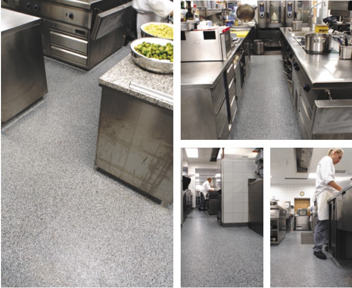 Sàn nhựa Silikal MMA lựa chọn lý tưởng cho hệ thống nhà bếp và căng tin trong khách sạn và trong toàn ngành công nghiệp thực phẩm: hoàn thiện qua đêm, chắc chắn, thẩm mỹ, an toàn